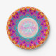 Fuchsia Pink Aqua Orange Party Mandala Monogram Paper Plate