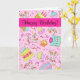 This custom "happy birthday" greeting card is a fun way to say "Happy Birthday". Customise the "happy birthday words" as well as the inside sentiment to say it in your own words or leave as is. Customise with a name. Celebrate a birthday or other occasion with the whimsy birthday cake and cupcake art that is perfect for both boys and girls as well as adults. The whimsy art features a birthday cake with candles and cupcakes, whimsy words “Happy Birthday”, dots and streamers on a turquoise aqua blue background in vibrant colours of pink, red, green, yellow, orange and blue. The art is original art by fabric designer Phyllis Dobbs. The label background is pink with a fuchsia pink strip for personalisation. A birthday cake is on the inside right of the card and the sentiment is on the left. Fully customisable. This cute and fun birthday greeting card is available in several background colours in this store.