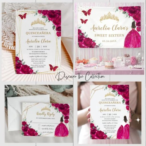 Fuchsia Hot Pink Floral Gold Quinceañera Sweet 16 Designed by The Happy Cat Studio