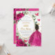 Fuchsia Pink Floral Roses Quinceañera Dama Request Invitation
