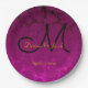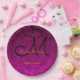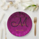 Fuchsia Pink Gold Black Elegant Wedding Monogram Paper Plate