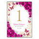 Fuchsia pink gold Quinceanera celebration table number cards. Features, script font, gold butterflies, watercolor roses and tiara. Perfect for an elegant princess style glam celebration. Personalize with your own details. Printed Zazzle invitations or instant download digital printable template.