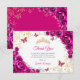 Fuchsia Pink Gold Floral Quinceanera Thank You Card