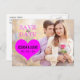 FUCHSIA PINK HEART PHOTO SAVE THE DATE ANNOUNCEMENT POSTCARD