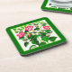 Coasters in a vintage Mediaeval drawing of deep fuchsia pink Italian Hibiscus flowers, with an emerald green border