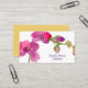 A floral business card featuring a fuchsia pink orchid with some flowers in full bloom and others budding hand painted with watercolor with a honey yellow back. You can change the background colours and text to fit your needs.