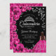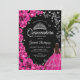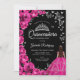 Fuchsia Pink Roses Silver Butterflies Quinceanera Invitation