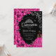 Fuchsia pink, black and silver Quinceanera celebration invitation. Features brunette girl in ball gown dress, script font, silver butterflies, hot pink roses and tiara. Perfect for an elegant princess style glam celebration. Personalise with your own details. Printed Zazzle invitations or instant download digital printable template.