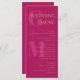 Elegant typography wedding menu in fuchsia pink with your initials in large letters down the side of the menu. Add your menu in printed gold coloured text. Monogrammed wedding menu in fuchsia with your initials. Typography wedding menu in shades of pink.