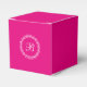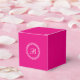 A personalised favour box in fuchsia (hot pink) featuring a white laurel wreath and custom monogram that you can edit with your own monogram. To change the font or if you need to re-centre the monogram after changing it, select the "customise it" button. This favour box makes a nice choice for receptions, parties, corporate events, and more.