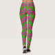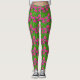 Leggings in a pattern of deep fuchsia pink wildflowers, with yellow centres, in a field of green grass