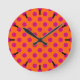 Fuchsia polka dots on orange round clock