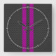 Fuchsia Racing Stripes in Carbon Fibre Style Square Wall Clock