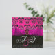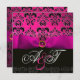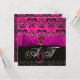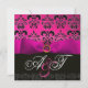 FUCHSIA RIBBON PINK PURPLE BLACK DAMASK MONOGRAM INVITATION