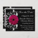 Cute and classy matching collection features black background with subtle swirling scrolls, and a vivid white swirl foreground design with bright pink fuchsia magenta gerbera gerber daisy flower. Perfectly elegant for a winter wedding, summer wedding or any season.
