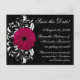 Fuchsia Scroll Gerbera Daisy Black Save the Date Announcement Postcard