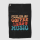 Fueled by Coffee and Music - Retro Typography Golf Towel