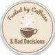 For those who run on coffee and questionable choices, this design says it all. “Fuelled by Caffeine & Bad Decisions.” features a cosy coffee cup illustration with steam forming playful stars and swirls, paired with a fun script-and-sans-serif typography combo. Set on a creamy coffee beige background with dark brown text and soft white accents, this design feels warm, witty, and highly relatable. Perfect for coffee lovers, night owls, creatives, and anyone whose best ideas happen after the first cup.