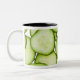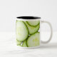Full frame of sliced cucumber, on white Two-Tone coffee mug