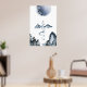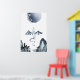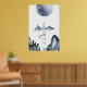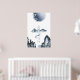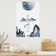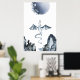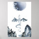 Full Moon and Dragon in Shades of Dusty Blue on White Background Poster -