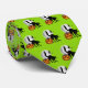 Halloween tie in evil green colour. The pattern covering this tie is made up of a grinning jack o'lantern, hunch back cat, flying witch and a big, full moon.