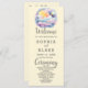This wedding program is perfect for couples seeking a unique and mystical ambiance for their special day. The harmonious blend of cornsilk yellow, deep blues, purples, and celestial golds creates a visually stunning masterpiece that exudes sophistication and charm. It is an ideal choice for those who want to infuse their wedding celebration with the enchantment of the cosmos.