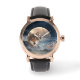 Men's watch featuring a painted magical fantasy landscape with a full moon and wolf.