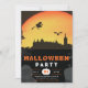The top half of the invitation sets a spellbinding scene, featuring a radiant full moon illuminating the night sky. Against this lunar backdrop, a witch takes flight on her broomstick, silhouetted by the moon's ethereal glow. It's a bewitching sight that perfectly captures the magic of Halloween.