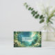Define your brand with celestial magic and the ethereal beauty of a hidden fairytale realm using this captivating business card. The design centers on a spectacular lush green mountain valley, where craggy peaks and deep forests frame a tranquil, winding river. The entire scene is bathed in the brilliant light of a massive, glowing crescent moon and a starry, twilight sky, creating an intense, magical atmosphere. The foreground is lavishly framed by abundant white and pale yellow roses and wildflowers, which glow with ambient light. This artwork blends rich, magical realism with vibrant natural beauty, conveying a sense of wonder, prosperity, and high-end elegance that makes your card truly unforgettable. This business card is ideally suited for a luxury event planner specializing in fairy-tale or twilight-themed galas, a boutique hotelier wanting to convey a magical, serene setting, or a fantasy novelist or game developer seeking distinctive, narrative-driven branding. It would also perfectly suit a fine art print seller focused on mystical or romantic works, or an exclusive floral designer emphasizing luminous, garden-style arrangements. The card's captivating combination of celestial imagery and abundant white florals ensures it is versatile for any sophisticated announcement, a refined gift enclosure, or an elegant invitation.