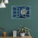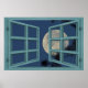 This design features a faux green wooden frame 6 pane window opening to view a spectacular capture of the full moon.