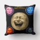 A burst of joyful energy to your spooky decor with this laughing full moon double sided throw pillow the back feature is a giant masterfully detailed full moon caught in a fit of hysterical laughter complete with joyful tears surrounding it are the four elemental moon faces the serene blue the fiery orange, the enigmatic green and the winking pink watching over the celebration