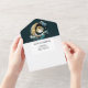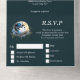 A beautiful all-in-one celestial moon invitation featuring full moons that appear to be 3 dimensional framed by glowing blue and golden twinkling stars set against a dark teal blue background that may be changed to any colour of your choice. These generative content graphics are ideal for a starry night, over the moon, sailor moon, galaxy or celestial theme wedding or special event. The bottom third has a tear off response card with personalised rsvp address for your guests to complete.
