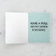 This card is great fun and good quality. I loved the humour inside and on the back. There is the opportunity to change the orientation of this card from landscape to portrait, which I did. It is relatively straightforward to amend the typeface to fit the new orientation. It was well packaged with no plastic. The printing on this card is excellent.