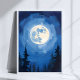 Full Moon | Night Sky Forest Watercolor Painting Poster