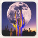 Full Moon Over Saguaro Cactus Square Paper Coaster