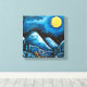 Full Moon Over Winter Mountains and Village Art Pr Canvas Print
