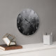 A wall clock with white numbers and a background of a spooky Halloween sky with misty trees along a dark haunted road, gothic ravens and a cloudy full moon in black and white. This clock has white numbers, but you can delete them for a plain background.