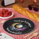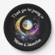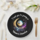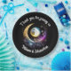 A wonderful and vibrant 3D looking full moon is floating above glowing blue fluffy clouds that are set against a black background. The moon is framed by a faux gold, magenta and blue crescent moon that has small twinkling stars in it and editable white templates for your custom wording. Ideal for a moon and stars wedding; for your special starry night themed anniversary or for any wiccan business; lodge or resort.