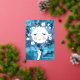 Beautifully illustrated celestial "thinking of you" card with blooming full moon with face. For spiritual seekers who love to connect with lunar energy. Silver foil on delicate details like stars and flowers. Send love, make a kind heart-print in this world. You can adjust or delete all texts. Original artwork by Marketa Stengl.