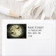 Halloween themed image. A big full moon at night with bats flying around and a raven sitting on the branch of a craggy tree.