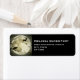 Halloween themed image. A big full moon at night with bats flying around and a raven sitting on the branch of a craggy tree.