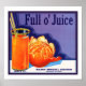 Vintage fruit crate label for Full o' Juice brand Oranges from California.