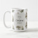 This festive mug features a soft watercolor pine forest wrapped around the cup, paired with playful typography that reads: