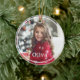 Modern and minimal photo ornament. The Name is displayed over the photo. Customised with your own photos on the front and back.
