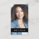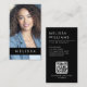 Black or any colour, vertical business cards with you name and photo on the front and name, QR code, name, title and contact information on the back.
