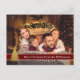 A modern photo Christmas card design with your family photo filling the card face. Metallic gold Christmas tree accent with dark red text band for your words. You can personalise the backside Christmas greeting, your return address and your names in script near the bottom with space for you to add a handwritten personal note.