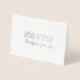 Celebrate a major professional achievement of your colleague, friend, or loved one with this card! The message is a play on the philosopher René Descartes' phrase "Je pense, donc je suis [I think, therefore I am]" ("cogito ergo sum"). The front of the card reads: "YOU THINK," followed by "therefore you are..." in silver foil brush (brushstroke) print and script lettering. Opening the card, the wording continues: "A FULL PROFESSOR! Congratulations!" in a matching silver tone. Perfect for advancement to full professor in any academic field or discipline.