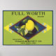 Full Worth Lemon Fruit Crate Label Poster