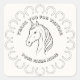Make every guest experience special with these fully customizable horse-themed stickers — perfect for farms, ranches, equestrian centers, and agritourism events. Featuring a beautifully sketched horse surrounded by a ring of horseshoes, these stickers allow you to personalize every line of text, including the header and farm name.