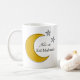 Make your Eid celebration truly personal with this fully customizable mug. The front features “Eid Mubarak” and a space to add your name, while the back provides a dedicated area for a personal message. Adorned with elegant line art of a golden crescent moon and silver stars, this mug is perfect for festive coffee or tea, or as a thoughtful, one-of-a-kind gift for family and friends. Fully editable design lets you personalize colors, text, and style to create your ideal Eid keepsake.
